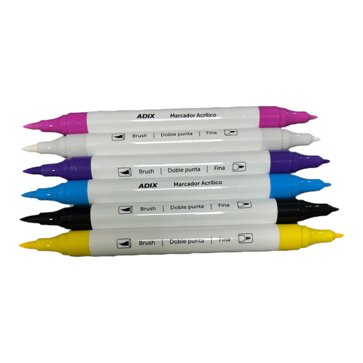 Marcador Acrílico Punta Brush/Fina Set 6 Colores